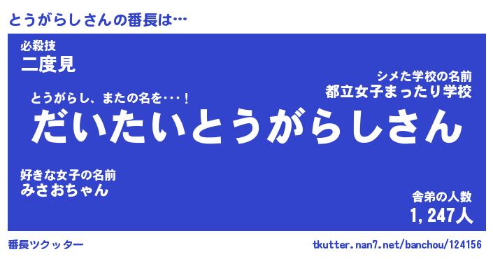 | ポケモン風あだ名 | 『トウチュウ』『トウガダネ』 |