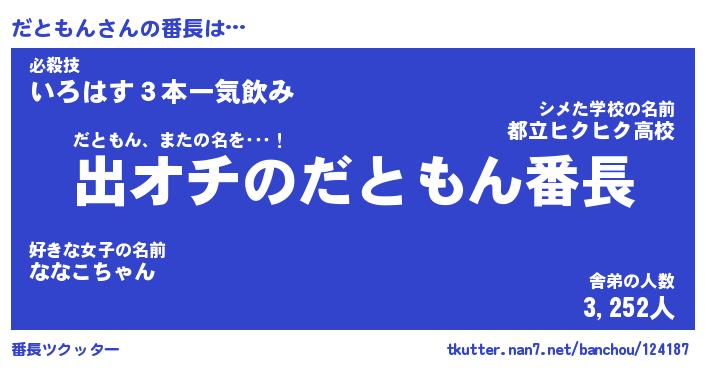 | ヘコむあだ名 | 『だとにー』『なまこ酢』『だとお』 |