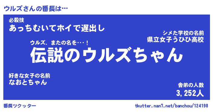 | ヘコむあだ名 | 『ウルにー』『レバニラ』『ウルを』 |