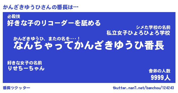 | ヒーロー風カッコイイあだ名 | 『スーパーカンザキユウヒ』 |