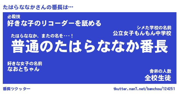 | 肩書あだ名 | 『たはらななか店長』『たはらななか班長』 |