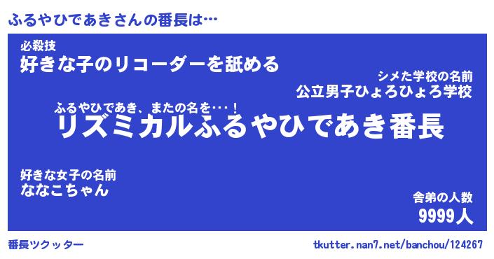| ヘコむあだ名 | 『ふるもー』『牛乳』『ふる太郎』 |
