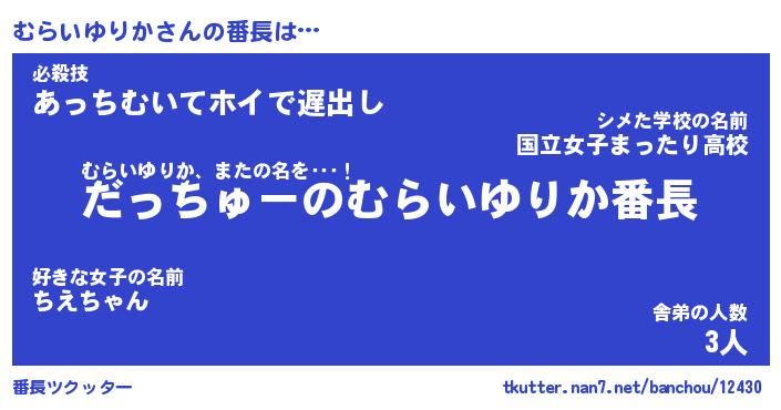 | ポケモン風あだ名 | 『ムラチュウ』『ムライダネ』 |