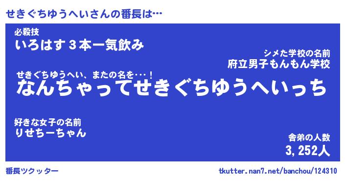 | 肩書あだ名 | 『せきぐちゆうへい店長』 |