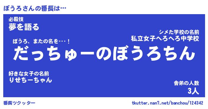 | ポケモン風あだ名 | 『ボウチュウ』『ボウロダネ』 |