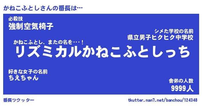| ヒーロー風カッコイイあだ名 | 『スーパーカネコフトシ』『暗黒騎士カネ』 |