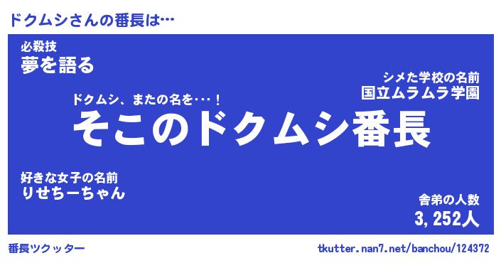 | 意味不明あだ名 | 『ペロリンドクムシ』『永久保存ドクムシ』 |