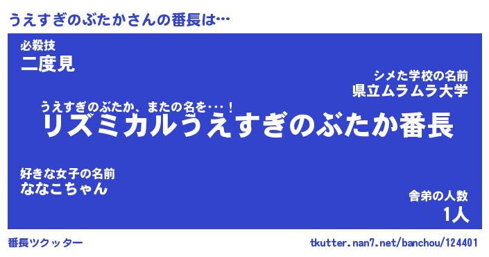 | 肩書あだ名 | 『うえすぎのぶたか店長』 |