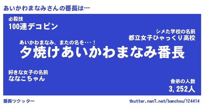 | 意味不明あだ名 | 『ペロリンあいかわまなみ』 |