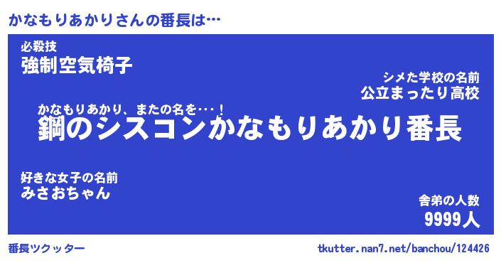 | 伝説のあだ名 | 『封印されしスナイパーかなもりあかり』 |
