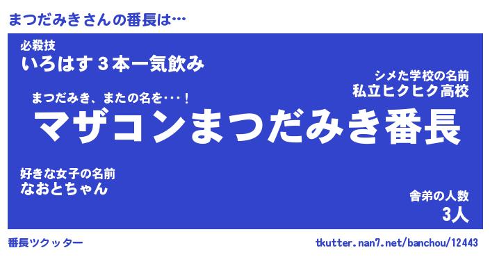 | 肩書あだ名 | 『まつだみき御曹司』『まつだみき団長』 |