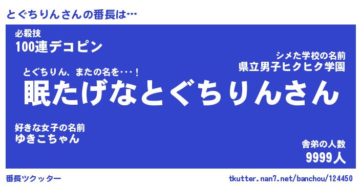 | ヘコむあだ名 | 『とぐもー』『つくし』『とぐお』 |