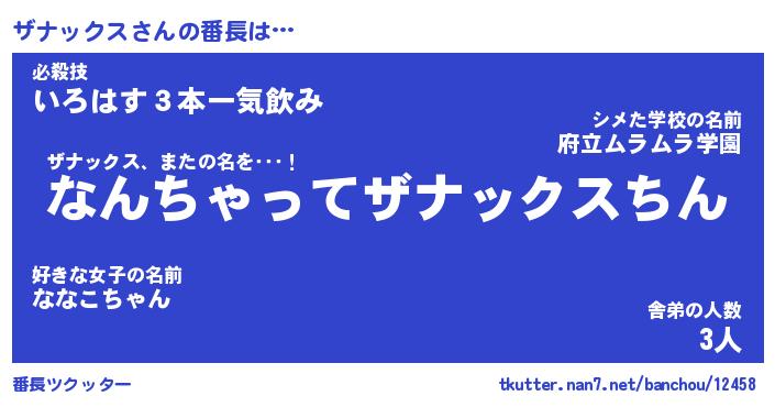 | ヒーロー風カッコイイあだ名 | 『スーパーザナックス』『魔戒騎士ザナ』 |
