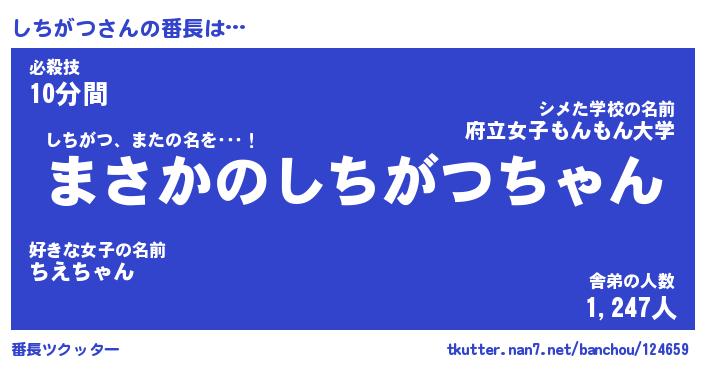 | 意味不明あだ名 | 『ペロリンしちがつ』『永久保存しちがつ』 |