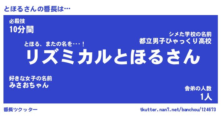 | 意味不明あだ名 | 『ペロリンとほる』『とほるフォーエバー』 |