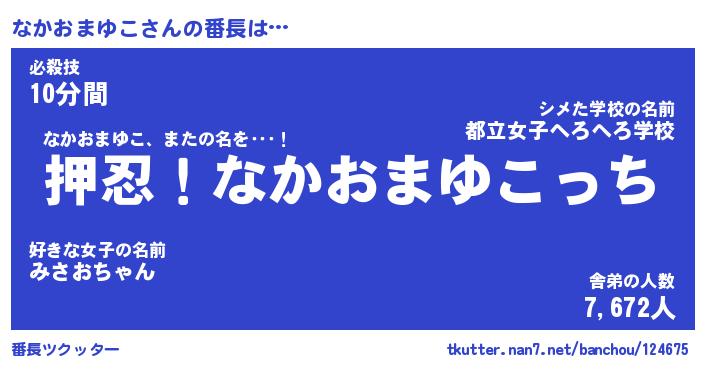 | 肩書あだ名 | 『なかおまゆこ社長令嬢』 |