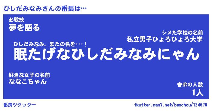 | ヘコむあだ名 | 『ひしもー』『豆乳』『ひしっ子』 |