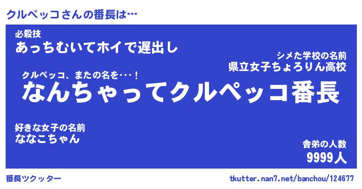 | ヒーロー風カッコイイあだ名 | 『スーパークルペッコ』『天弓騎士クル』 |