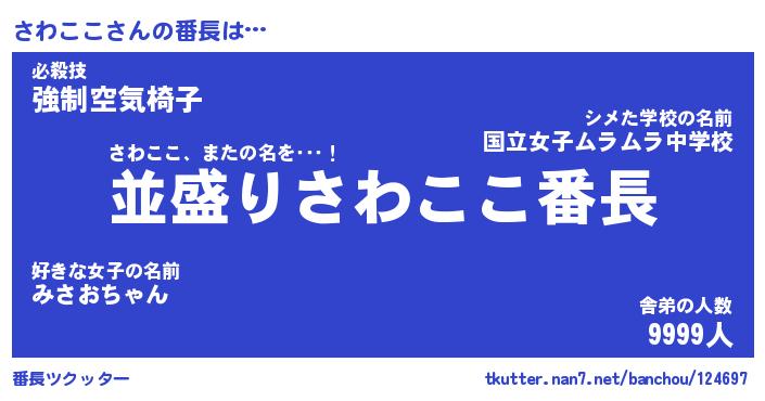 | 肩書あだ名 | 『さわここ社長令嬢』『さわここ総理大臣』 |