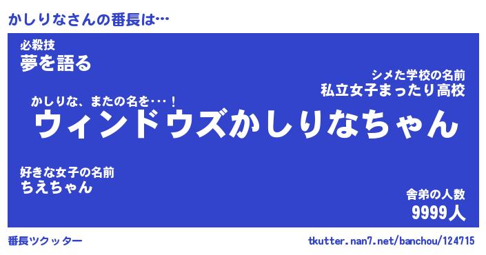 | ヒーロー風カッコイイあだ名 | 『スーパーカシリナ』『天弓騎士カシ』 |