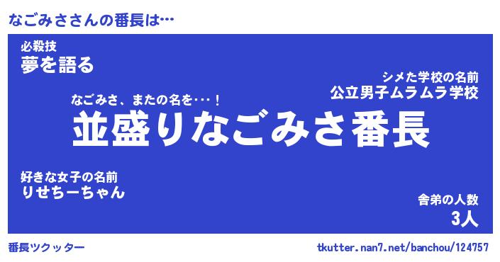 | ポケモン風あだ名 | 『ナゴチュウ』『ナゴミダネ』 |