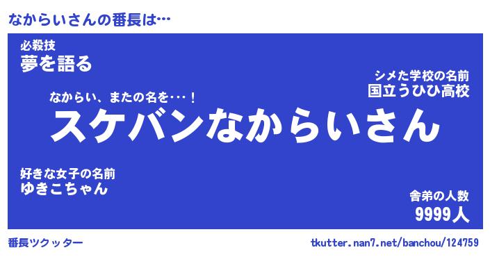 | 欧米人風あだ名 | 『マイケルなからい』『ウサインなからい』 |