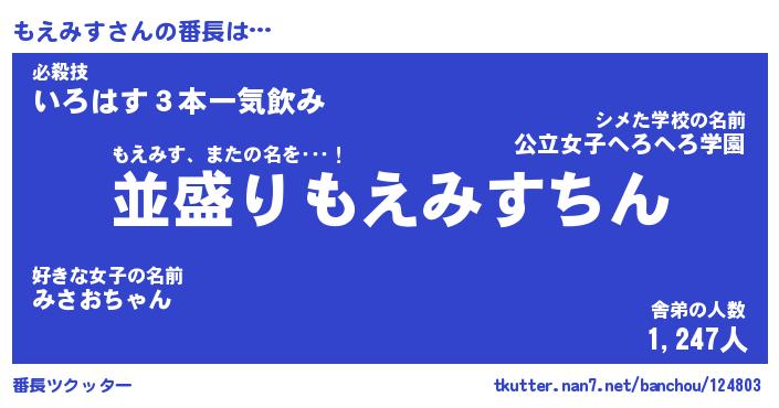 | 肩書あだ名 | 『もえみす社長』『もえみす国家主席』 |