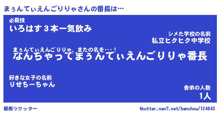 | 肩書あだ名 | 『まぅんてぃえんごりりゃ社長』 |