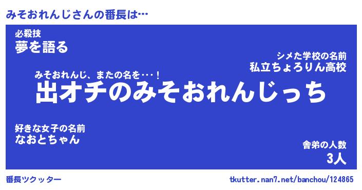 | 伝説のあだ名 | 『伝説のスナイパーみそおれんじ』 |