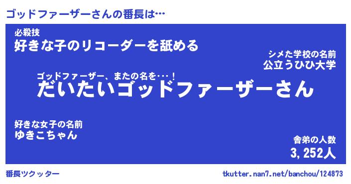 | 男性向けラノベタイトル風あだ名 | 『ゴッドファーザーの憂鬱』 |