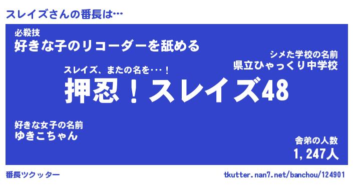 | 意味不明あだ名 | 『ペロリンスレイズ』『永久保存スレイズ』 |