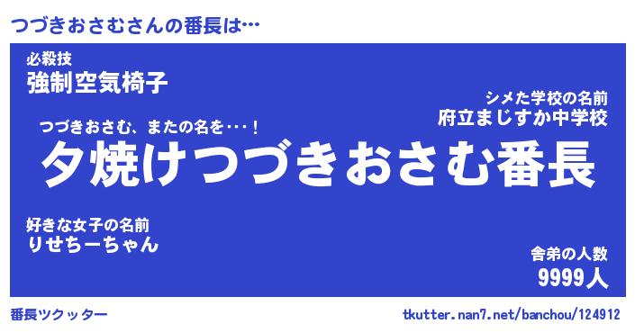 | ポケモン風あだ名 | 『ツヅチュウ』『ツヅキダネ』 |