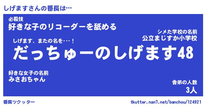 | 肩書あだ名 | 『しげますCEO』『しげます総理大臣』 |