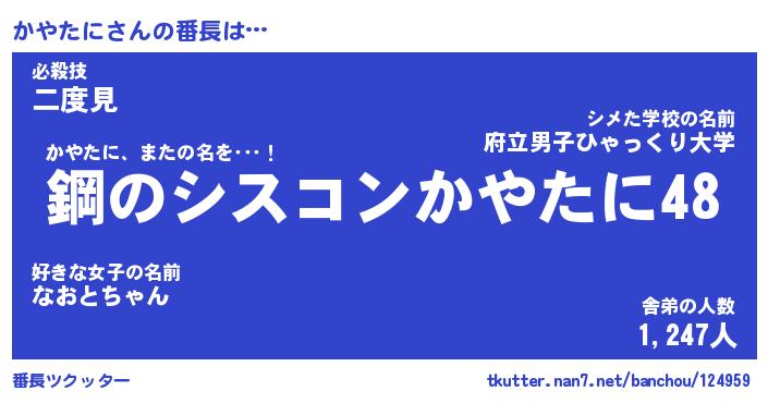 | ヘコむあだ名 | 『かやにゅー』『豆乳』『かやお』 |