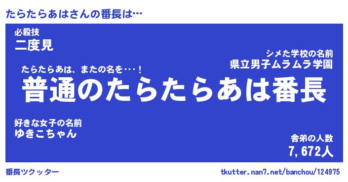 | ヒーロー風カッコイイあだ名 | 『スーパータラタラアハ』『炎刃騎士タラ』 |