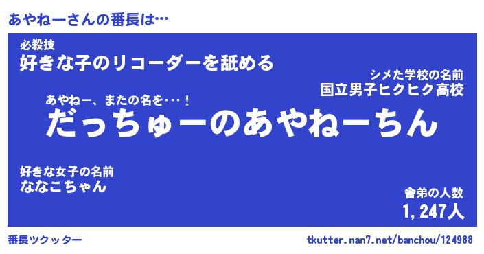 | 肩書あだ名 | 『あやねー店長』『あやねー大統領』 |
