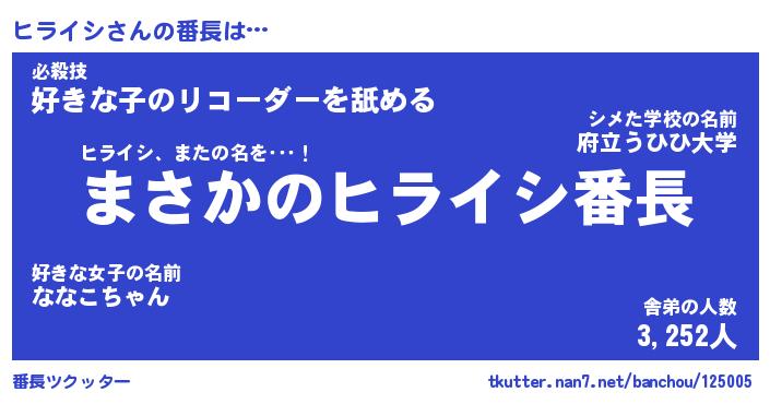 | ピコ太郎風あだ名 | 『ヒコ太郎』『ピヒ五郎』『ヒラ三郎』 |