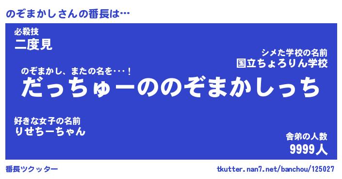 | ヒーロー風カッコイイあだ名 | 『スーパーノゾマカシ』『天弓騎士ノゾ』 |