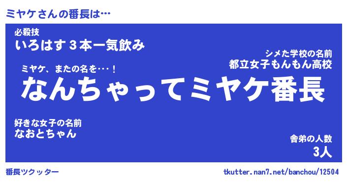 | ポケモン風あだ名 | 『ミヤチュウ』『ミヤケダネ』 |