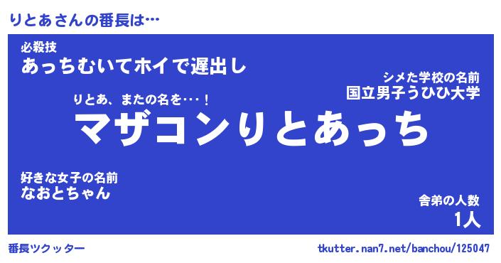 | 意味不明あだ名 | 『ペロリンりとあ』『りとあフォーエバー』 |