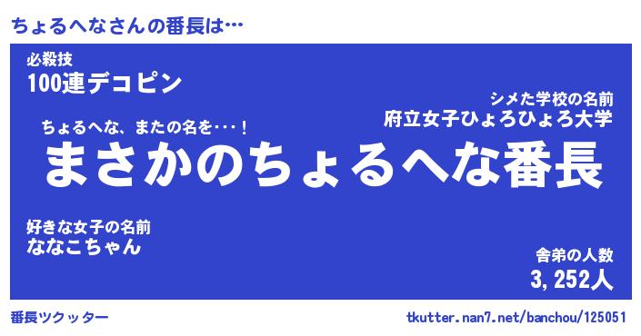 | 男性向けラノベタイトル風あだ名 | 『ちょるへなの憂鬱』 |