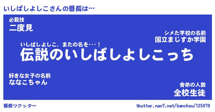 | 伝説のあだ名 | 『伝説のスナイパーいしばしよしこ』 |