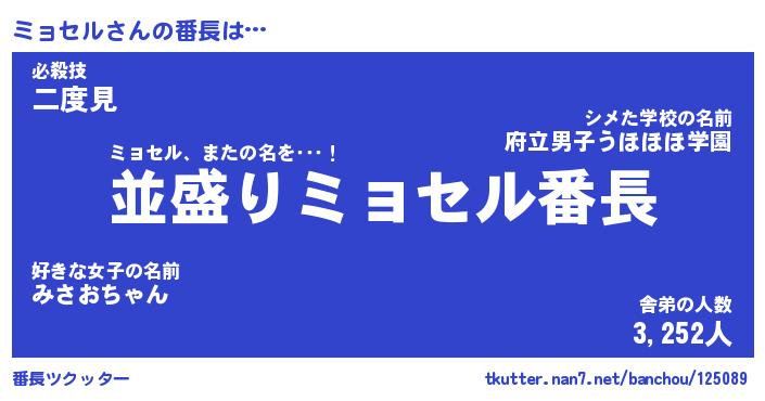 | ヒーロー風カッコイイあだ名 | 『スーパーミョセル』『幻影騎士ミョ』 |