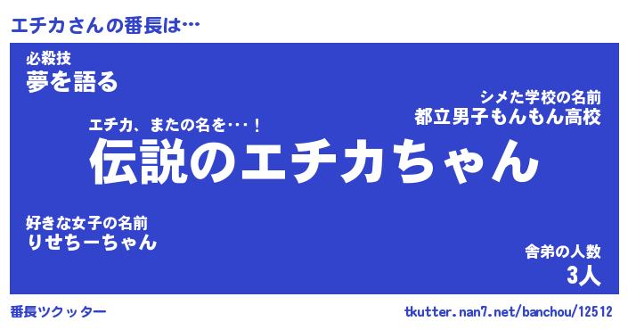 | 意味不明あだ名 | 『ペロリンエチカ』『エチカフォーエバー』 |