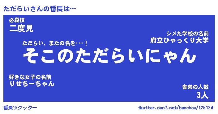 | 意味不明あだ名 | 『ペロリンただらい』『永久保存ただらい』 |