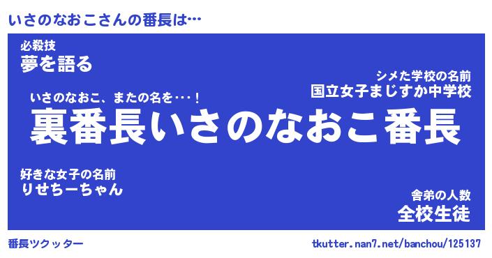 | ポケモン風あだ名 | 『イサチュウ』『イサノダネ』 |