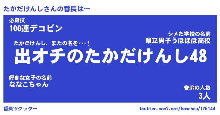 | 伝説のあだ名 | 『伝説のスナイパーたかだけんし』 |