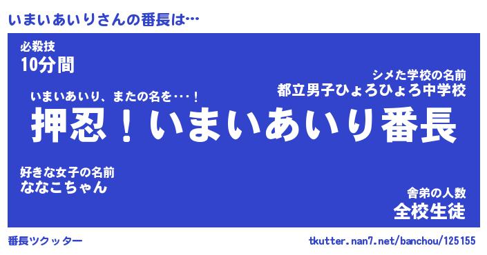 | ヒーロー風カッコイイあだ名 | 『スーパーイマイアイリ』『暗黒騎士イマ』 |