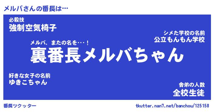 ヒーロー風カッコイイあだ名 | 『スーパーメルバ』『ウルトラメルバマン』 |