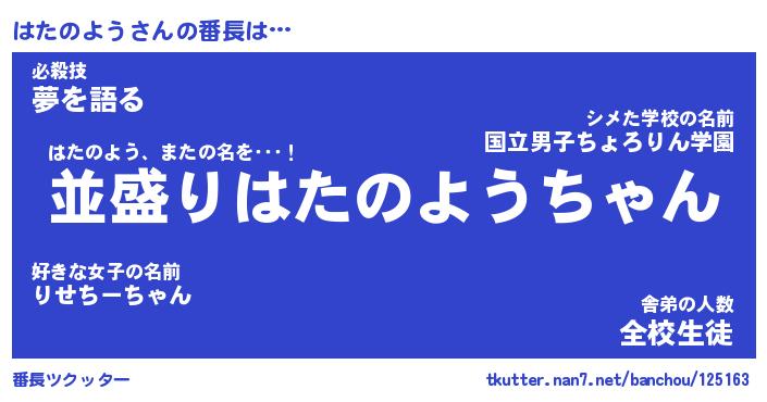| 肩書あだ名 | 『はたのよう社長令嬢』『はたのよう教頭』 |